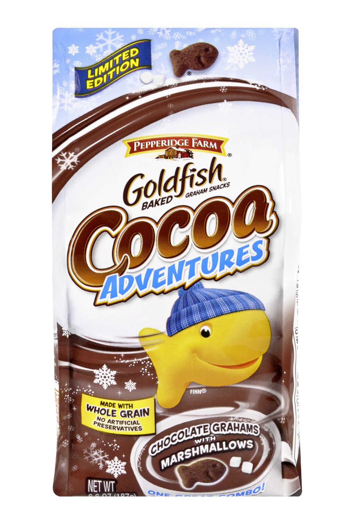 Pepperidge Farm Goldfish Cocoa Adventures Grahams - H-E-B Shop Pepperidge Farm Goldfish Cocoa Adventures Grahams - compare prices, see product info & reviews, add to shopping list, or find in store. ... Goldfish cocoa adventures! Labels for education. Ingredients Whole Wheat Flour, Unbleached Enriched Wheat Flour (Flour, Niacin, Reduced Iron, Thiamine Mononitrate [Vitamin B1], Riboflavin [Vitamin B2 ...